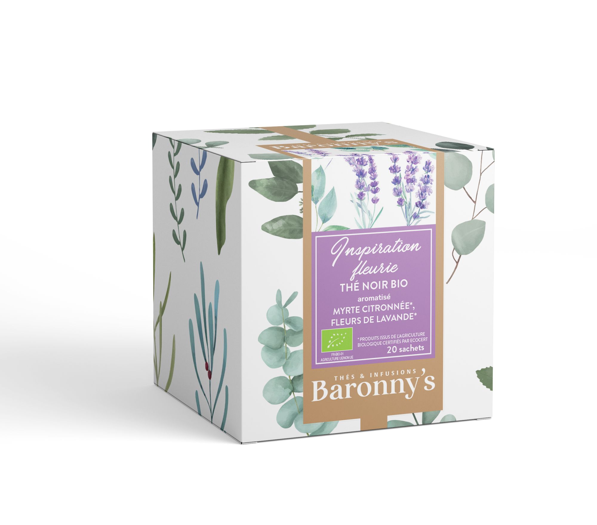 Thé noir*, myrte citronnée*, coques de cacao*, feuilles de buchu*, fleurs de lavande*, pétales de rose*, *Produits issus de l'Agriculture Biologique, certifiés ECOCERT FR-BIO-01