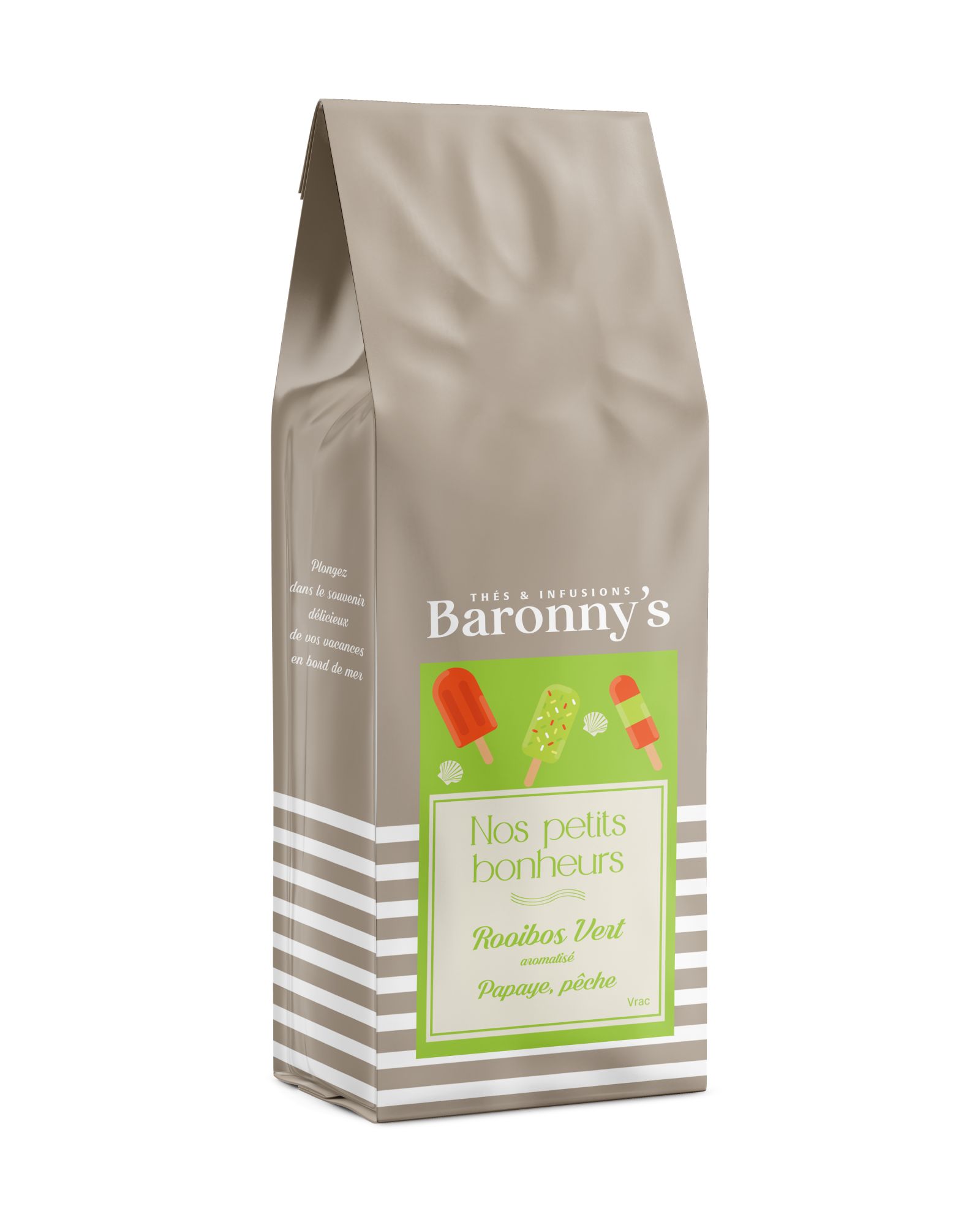 Un rooibos vert fruité et désaltérant. Ici l’exotisme de la papaye rencontre la douceur de la pêche pour donner un mélange vitaminé et fruité.